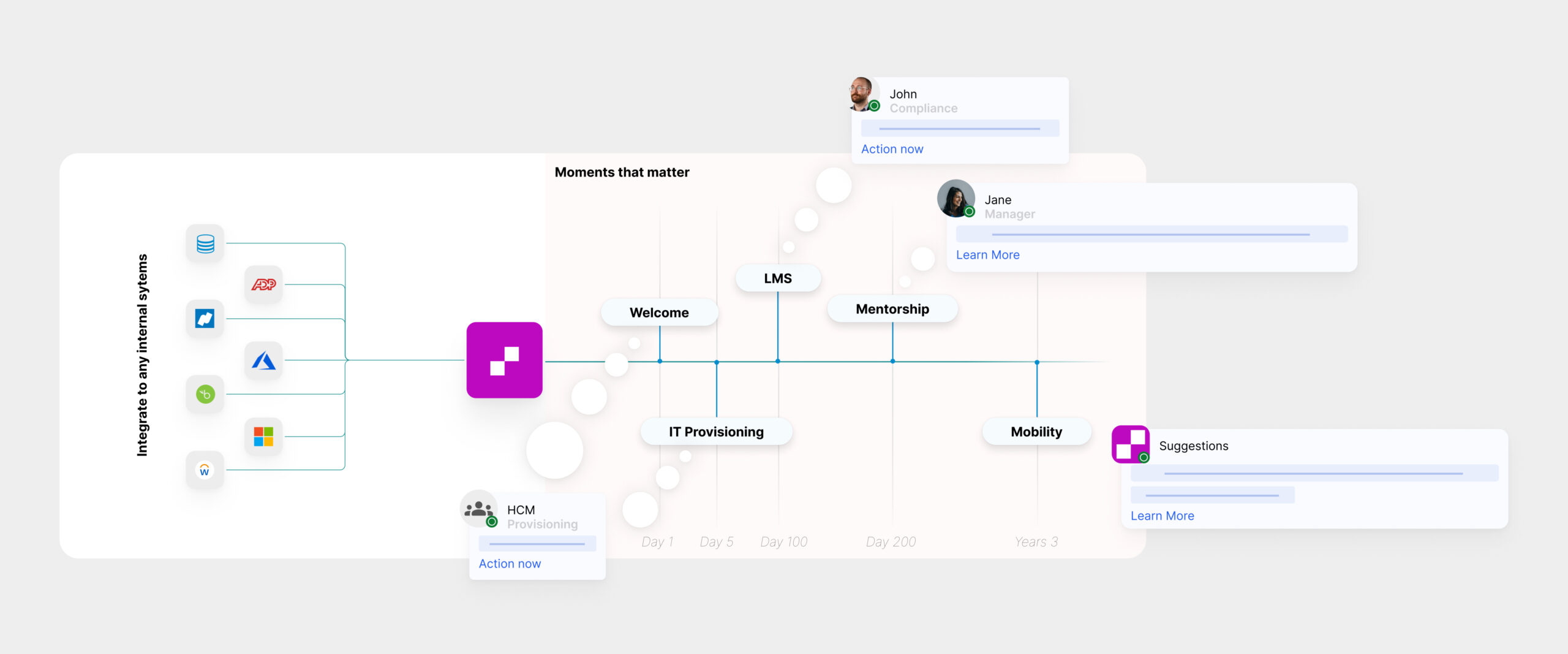 Jurnyflo empowers organizations to automate responses to significant employee moments, ensuring timely recognition and support through personalized flows triggered by specific events.