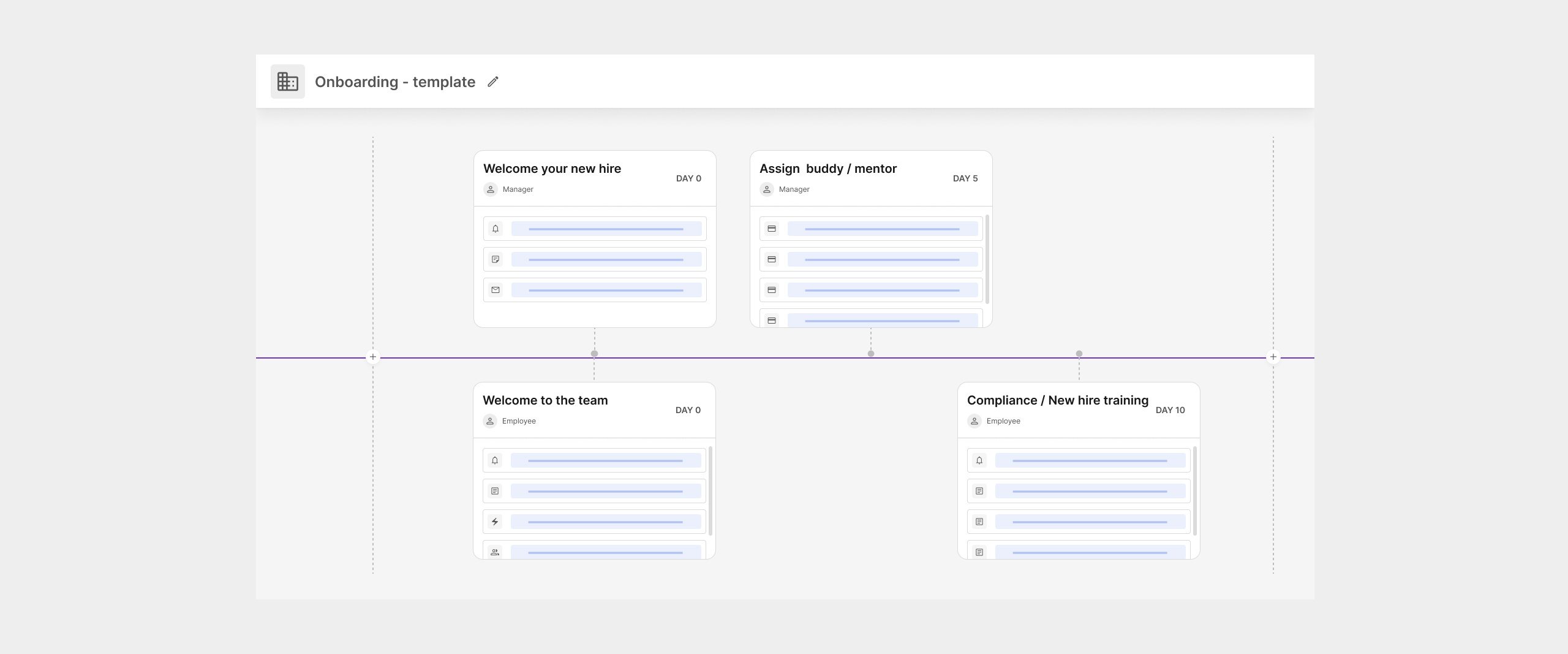 Managers and HR with elevated access can easily create flows using Jurnyflo’s intuitive interface. They can set conditions, define triggers, and include email templates and forms for seamless automation.